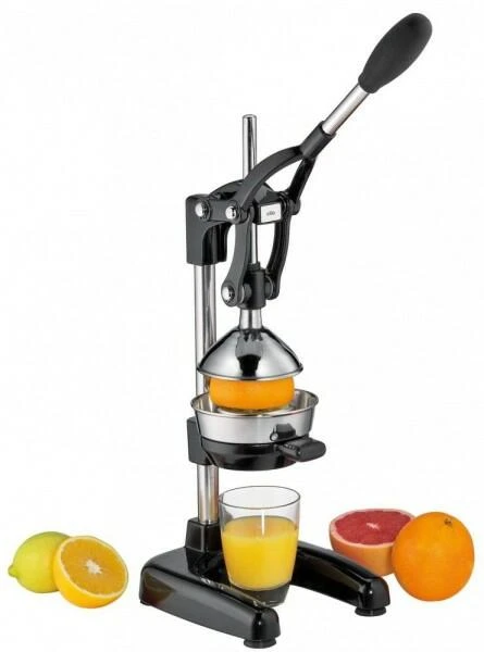 cilio Profi Saftpresse Amalfi in hochglanz schwarz. Für bis zu 25% mehr Saft von Zitrusfrüchten im Vergleich zu herkömmlichen Saftpressen.
