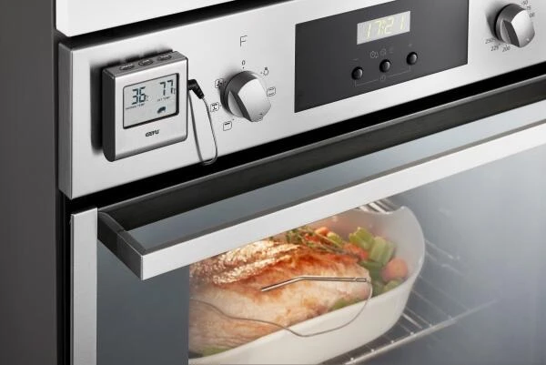 Zur Temperaturmessung bei der Lebensmittelzubereitung darf das digitale Bratenthermometer Tempere nicht fehlen.
