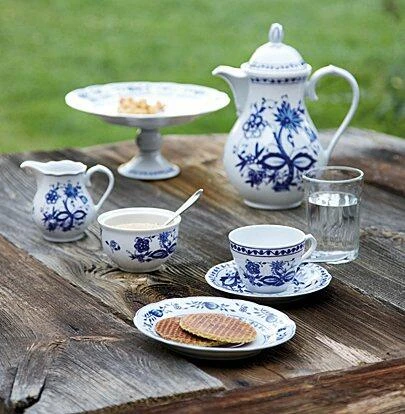 Das Frühstück, serviert auf dem Porzellan mit dem verspielten Zwiebelmuster von Kahla, schmeckt gleich noch mal so gut. Kleine Besonderheiten wie der stilisierten Rosenknospe, der bogenförmige Rand und der floral geschwungene Henkel, sind eine tägliche Freude für das Auge. Die intensive blaue Farbe – ihr Geheimnis liegt in der Verwendung von Kobaltoxid – weckt die Lebensgeister. Da kann das Frühstück mit dem Zwiebelmuster von Kahla schon mal bis zum Mittag dauern.