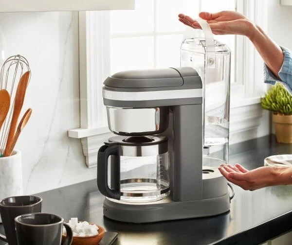 KitchenAid Drip-Kaffeemaschine in dunkelgrau. Die KitchenAid Drip-Kaffeemaschine mit innovativem Brühsystem kombiniert die Vorteile herkömmlicher Kaffeemaschinen mit denen des manuellen Aufbrühens.