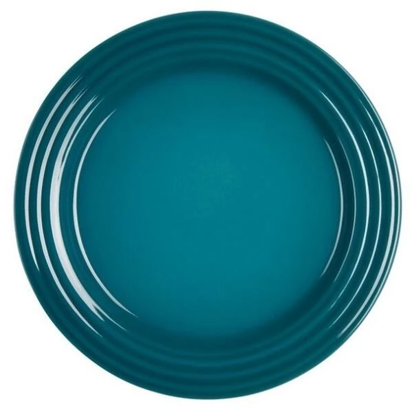 Le Creuset Frühstücksteller in deep teal. Der Teller eignet sich sowohl als Frühstücksteller als auch für die nachmittägliche Kaffeetafel.