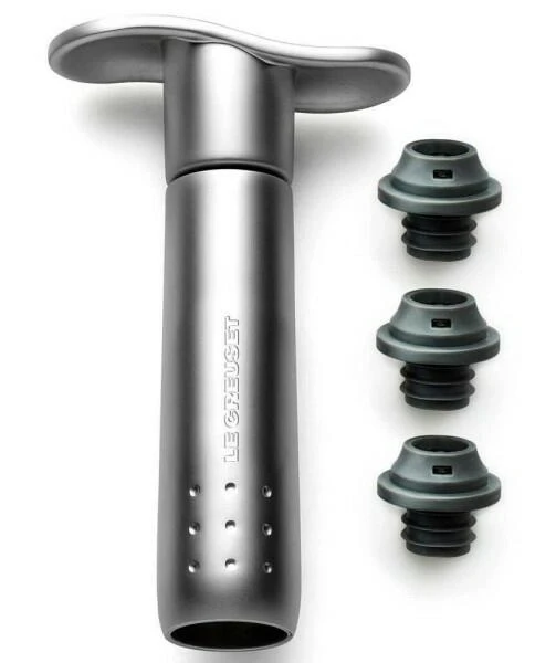 Le Creuset Screwpull Weinpumpe WA-137S aus Metall können geöffnete Rotweinflaschen wieder aromadicht verschlossen werden. Sie verfügt über einen angenehmen Soft-Touch-Griff und 3 mitgelieferten Weinverschlüssen.
