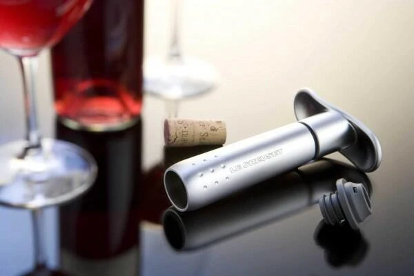 Weinpumpe WA-137S in Metall. Vakuumpumpe zum aromadichten Verschließen von Rotwein.