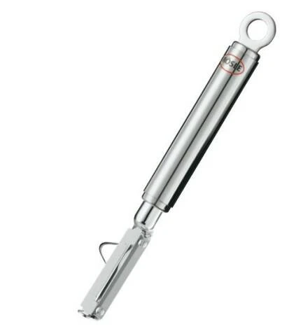 Rösle. Durch die bewegliche Klinge kann Gemüse und Obst mit mittlerer Schälstärke geschält werden. Mit dem beidseitig geschliffenen Ausstecher können schadhafte Stellen schnell entfernt werden. Für Rechtshänder und Arbeiten zum Körper hin. Klinge auswechselbar.