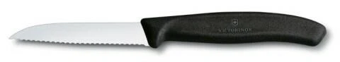Gemüsemesser mit Wellenschliff, 8 cm, schwarz. Zum Schälen, Schneiden und Würfeln von Gemüse.