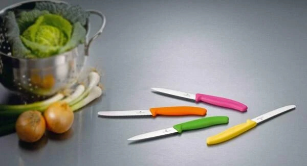 Victorinox ist klein und extrem scharf. Für eine hohe Schnitthaltigkeit sorgt die angemessene Härte und der lasergetestete Schnittwinkel der Klinge. Da das Messer sich für jegliche Schneid- und Feinarbeiten eignet, ist es unabdingbar in jeder Küche. Obst und Gemüse kann entkernt oder entsteint, geschält und zerteilt werden. Zudem kann das Messer verwendet werden, um Gemüse und Obst dekorativ zu gestalten, wie etwa mit raffinierten Schnitzereien. Das Messer ist in verschiedenen, attraktiven Farben erhältlich.