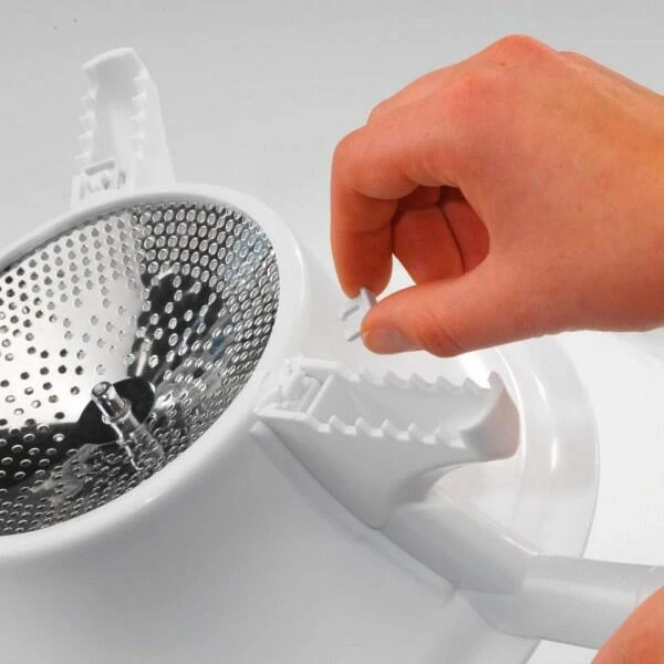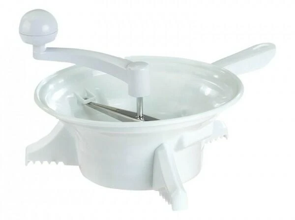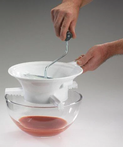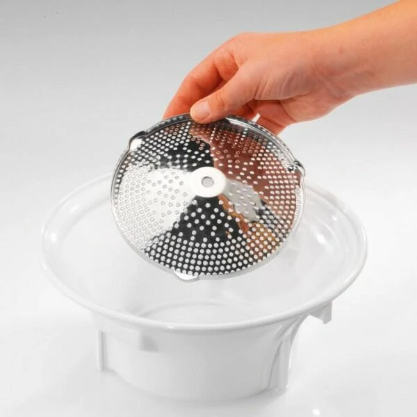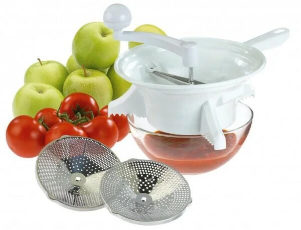 Diese Maschine für Hobby-Köche eignet sich mitunter für die frische Zubereitung von Pürees, Soßen und Babynahrung. Sie kann sowohl zum feinen als auch zum groben Passieren dank der zwei auswechselbaren Lochscheiben verwendet werden. Ausgestattet ist dieser Küchenhelfer weiterhin mit drei Auflagearmen für einen festen Halt auf größeren sowie kleineren Behältnissen.